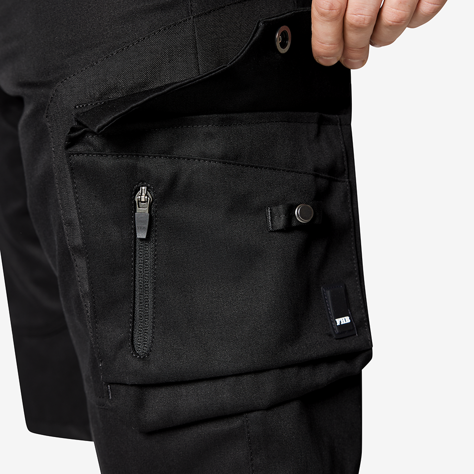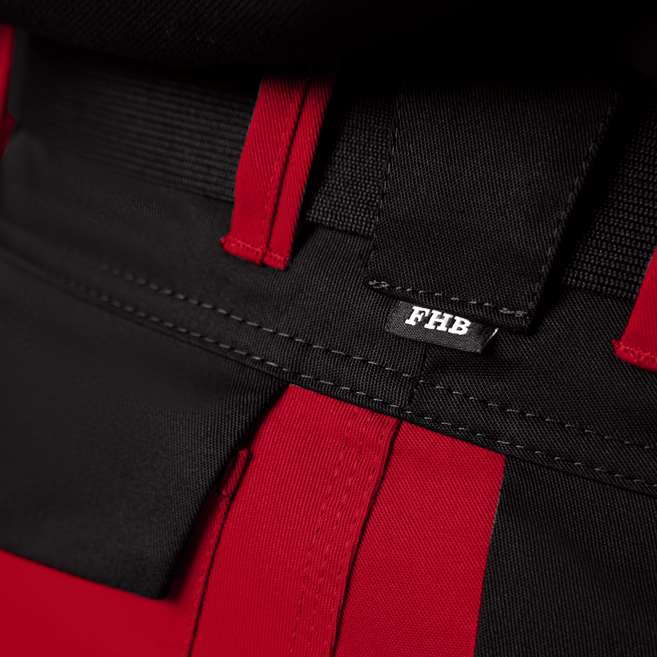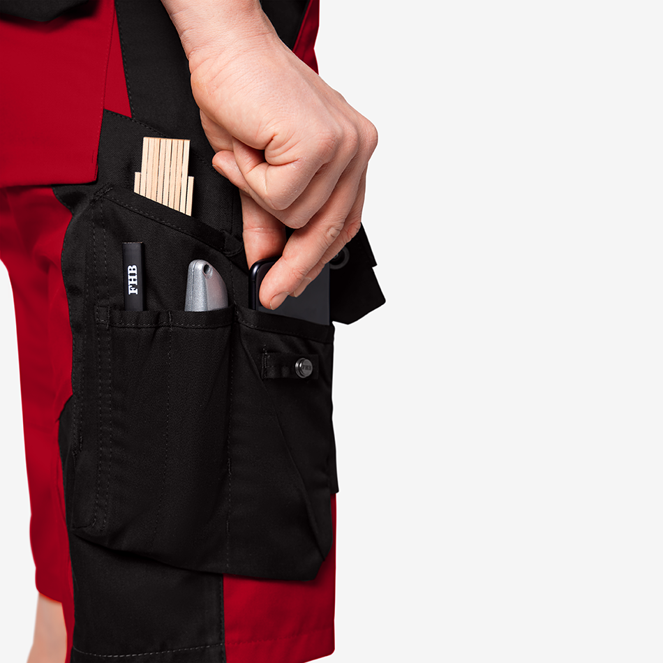 A breathable stretch insert in the crotch enhances mobility and helps prevent tearing during active work. Practical pocket solutions include tool, pen, and folding rule pockets on both sides, allowing quick access whether you’re right- or left-handed. Cordura® reinforcements under the side pockets help protect against wear from tools, while durable pocket bags made from strong outer fabric add long-lasting reliability. Belt loops are spaced to accommodate FHB Max and Moritz holster pockets.