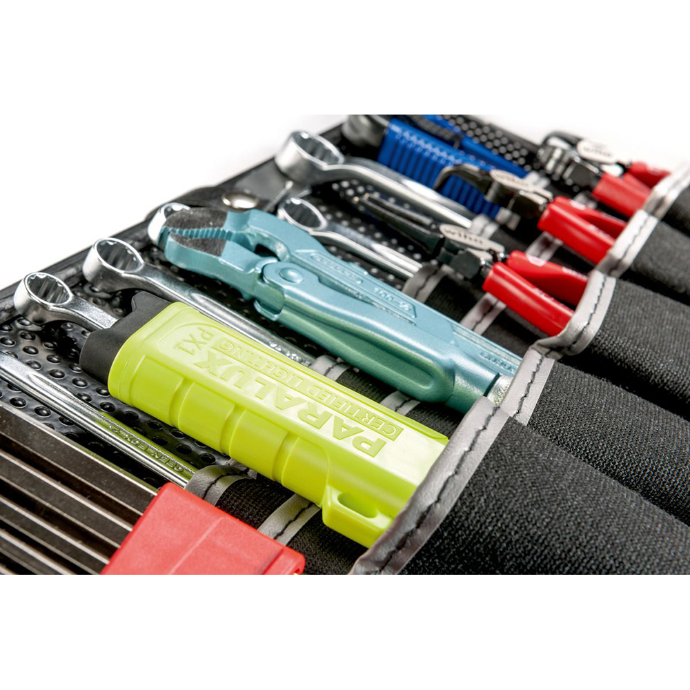 Parat Bottom Tray with one longitudinal separator, three cross separators, one flush cover panel with 15 pockets, and one push-in compartment.