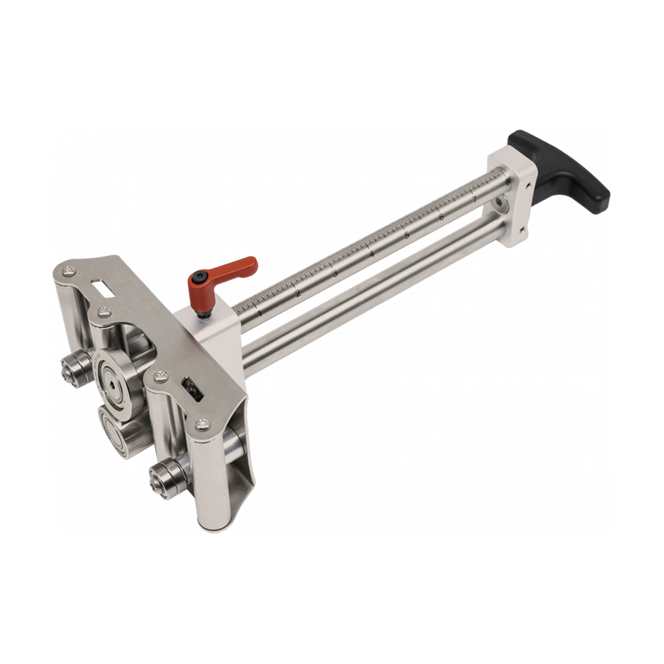 The rolls are now easily exchangeable to change the radius from 0.7mm to 2.0mm, which is better suited for bending soft materials like: zinc, aluminum, copper, etc.