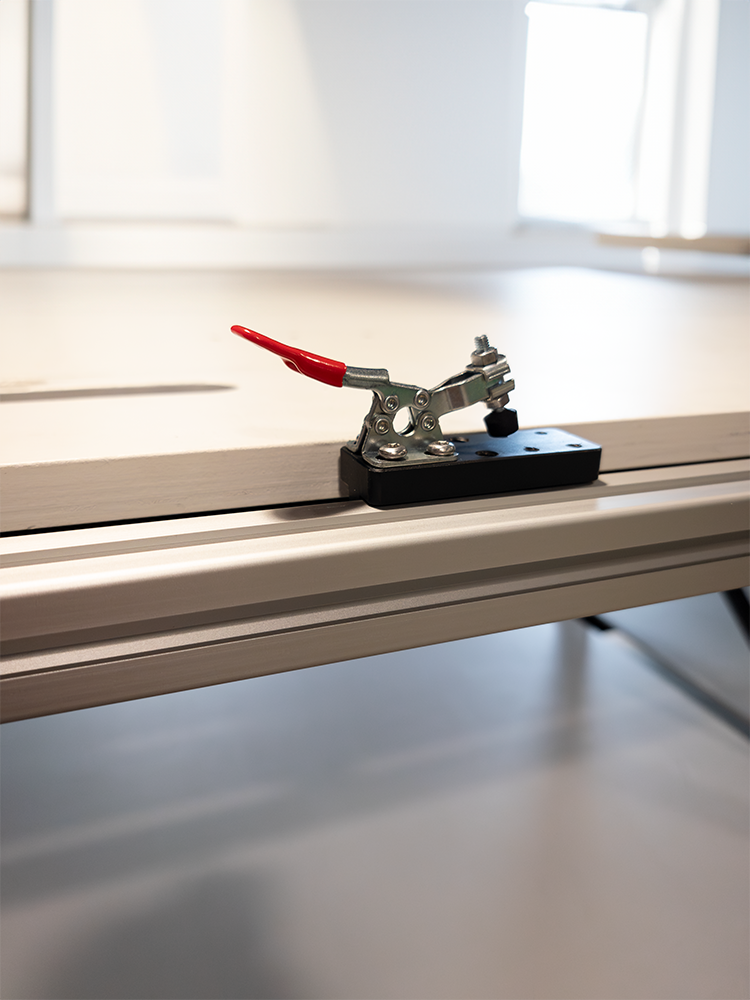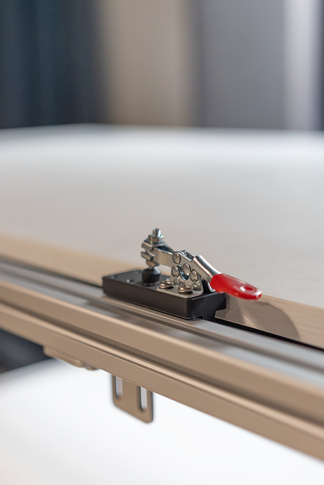 The Buschmann roll cutter rail is an optional accessory which aims to ease the process of achieving straight lines and minimize effort required for precise and consistent cuts. Fixing clamps are included.