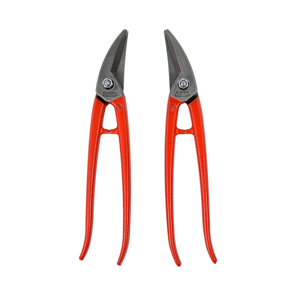 Special circle snips set for straight and curved cuts with induction-hardened blades. Includes left and right hand models in 250mm length.
