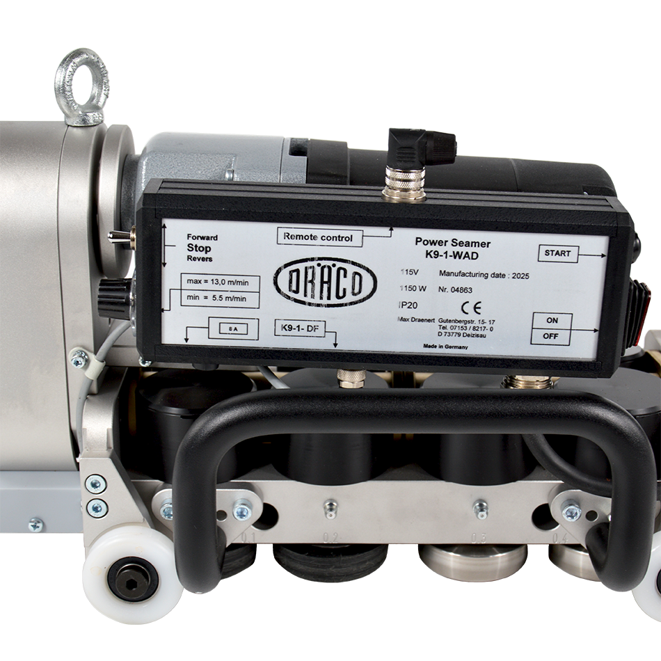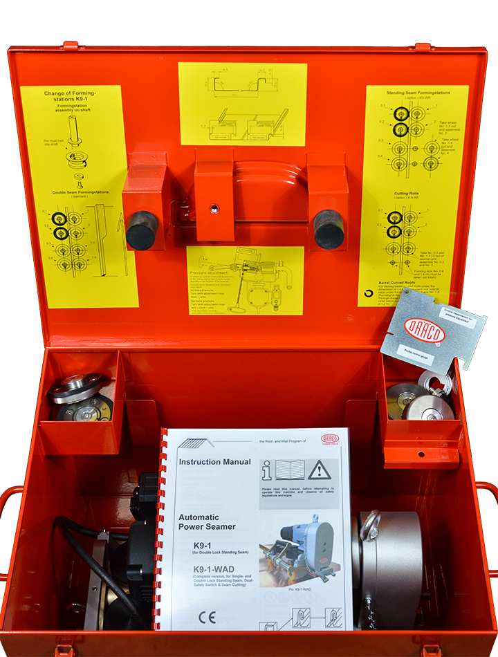 The K9-1 multifunctional automatic power seamer combines proven Dräco patented technology with innovative new features for fast, safe, and reliable double lock seaming. A key upgrade is the variable speed control, allowing consistent panel closing in all seasons. For cold-weather applications, the K9-1 is ideally paired with the optional Winter Set K9-1WS, designed for operation at low outside temperatures.