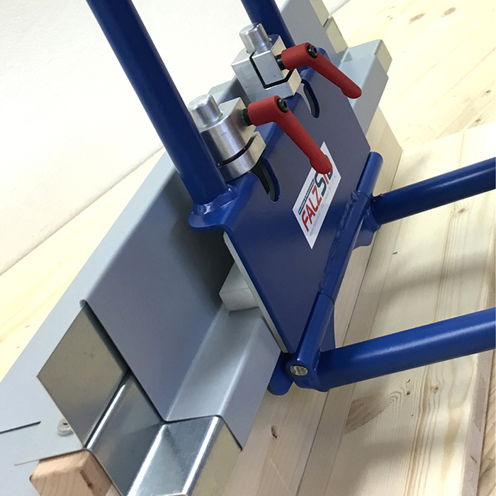 Falzsid cap flashing hem closer Vario for professional and simple closing of the seam between sheet and fixing profile. Especially suitable for cap flashings, windowsill sheets, facade cladding sheets, wall cladding etc.