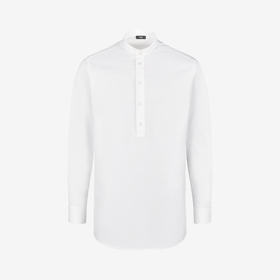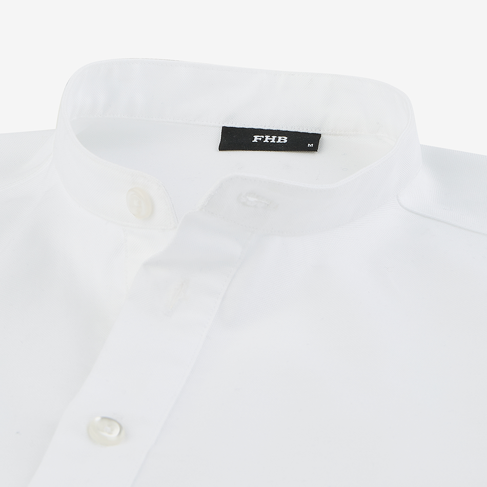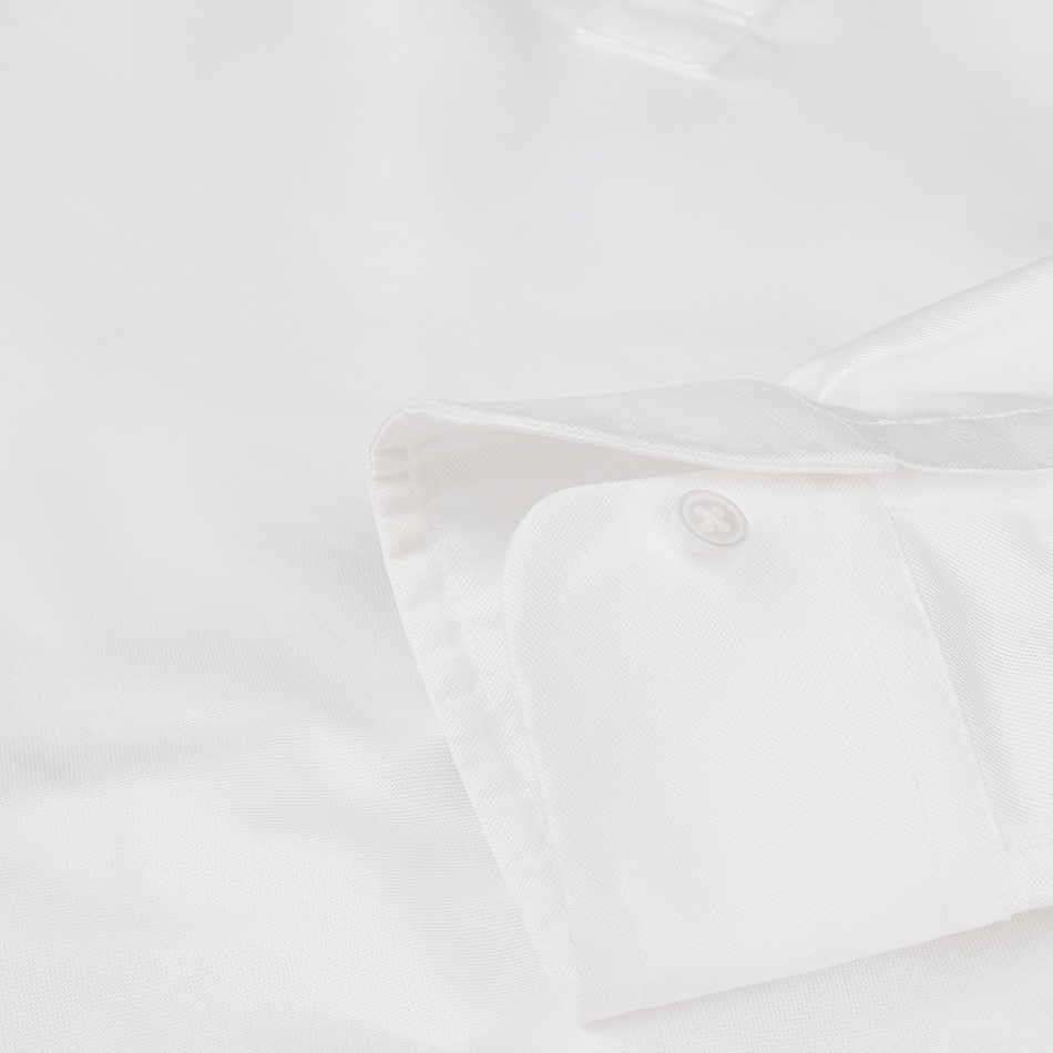 Crafted from durable Oxford fabric, the shirt has a stable, textured feel while remaining comfortable for everyday wear. The low-profile collar helps prevent dirt buildup and requires less frequent washing, while the deep neckline allows for easy on and off. The slip-on design eliminates front buttons, preventing them from getting in the way during work.