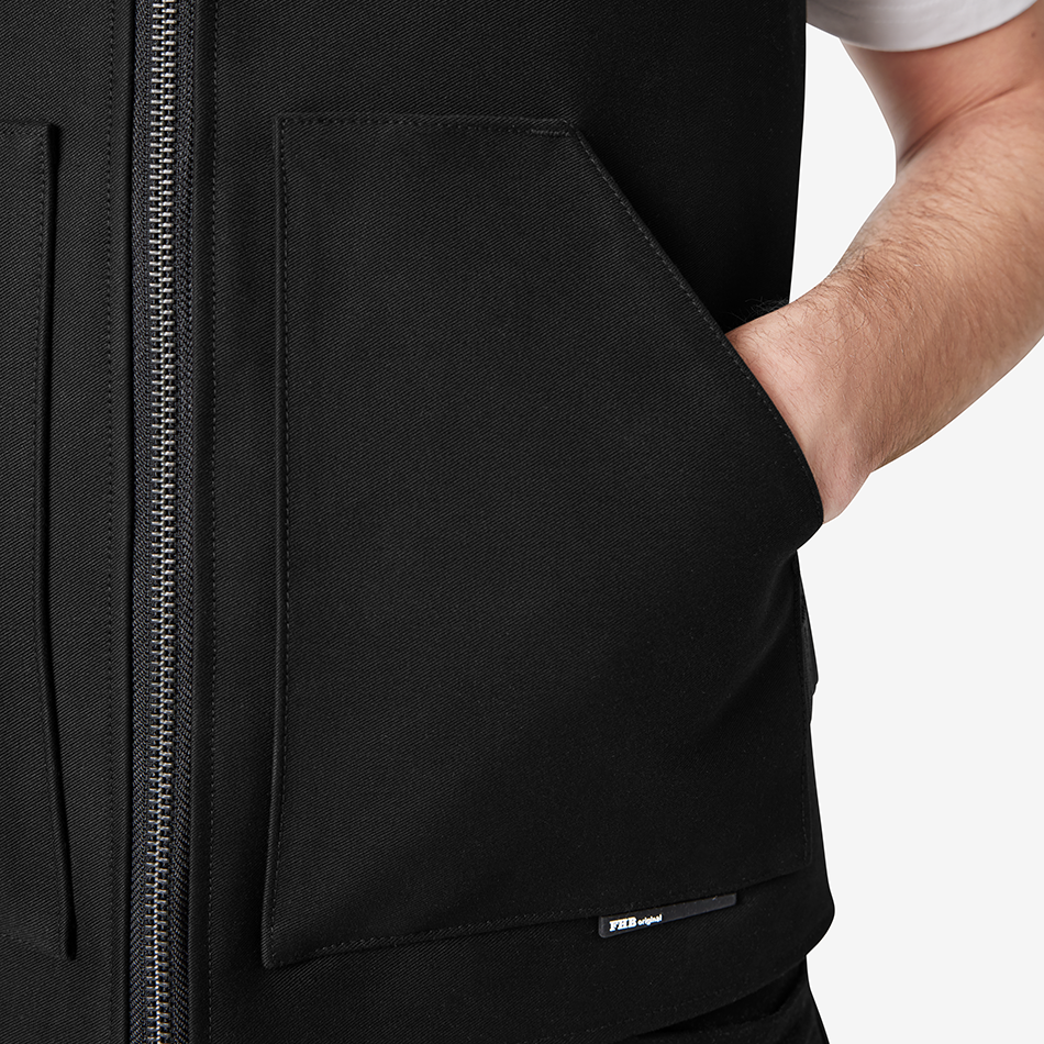 The FHB work vest “Fiete” combines the traditional durability of guild clothing with a modern, functional design. Made from robust Zwirn Doppelpilot outer material, a fabric long valued in traditional workwear, the vest offers exceptional durability and long-lasting performance.