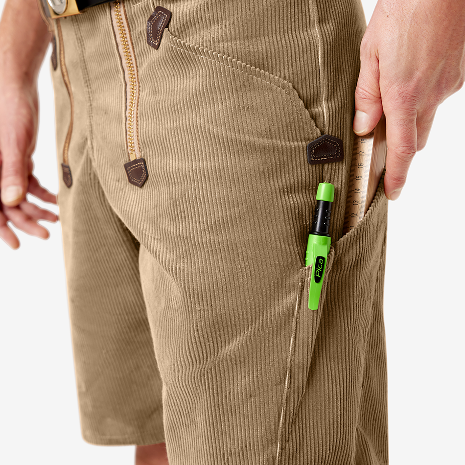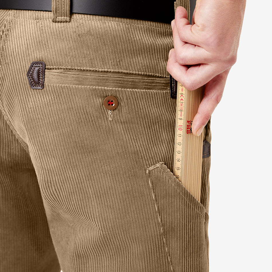 These FHB Genoa corduroy guild shorts “Hans” are classic work shorts made from breathable Genoa cord, also known as summer cord, providing comfort and durability during warmer working days. Designed with a loose, comfortable fit, they offer excellent freedom of movement and all-day wearability. A slightly higher waistband at the back and a wider waistband design help the shorts stay securely in place while working.