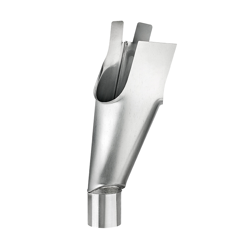 The adjustable outlet combines the gutter outlet and the downpipe diverter. Because of the integrated ball joint, the installation angle can be automatically adjusted.