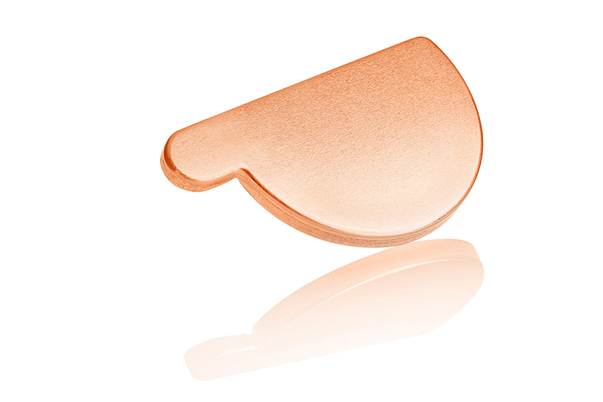 The no-frills Groemo gutter end cap, left, for half round gutters.