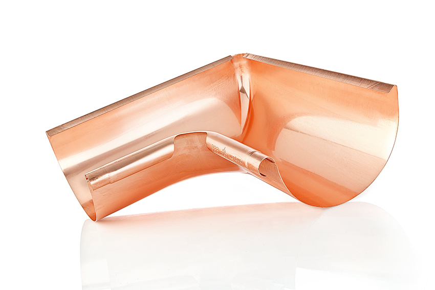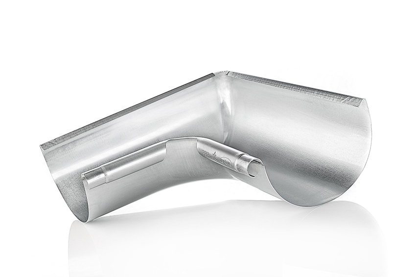 The deep-drawn interior gutter corner made from one piece of metal and counterbalances low tolerances on the building. The recessed bead with insertion slot makes installation easier. The seam is perfectly prepared for soldering.