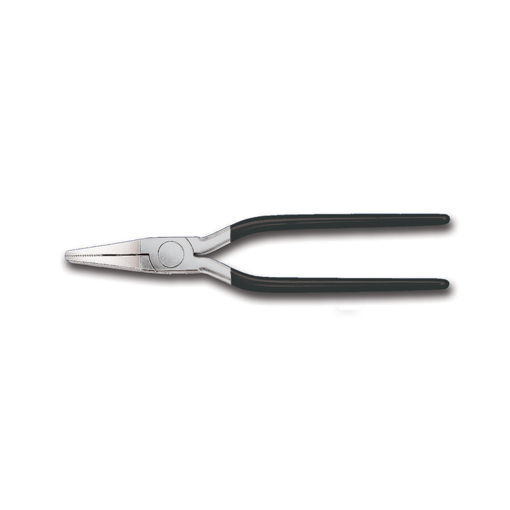 Kiesel stainless steel flat nose pliers with teeth, lap joint and pvc covered handle. These pliers are powder-coated and forged out of chrome-vanadium steel.