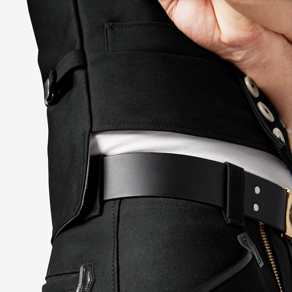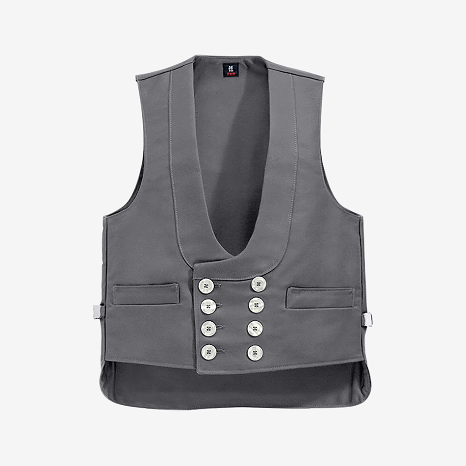 This FHB english leather guild vest “Jakob” is a traditional guild vest with built-in kidney protection. The extended back provides effective protection against cold and wind, making it especially comfortable on cooler days. Crafted from robust twisted double pilot outer material, this traditional 100% cotton fabric is breathable, moisture-absorbent, and built for demanding work environments. The back is made from the same heavy-duty fabric as the front for consistent durability throughout.