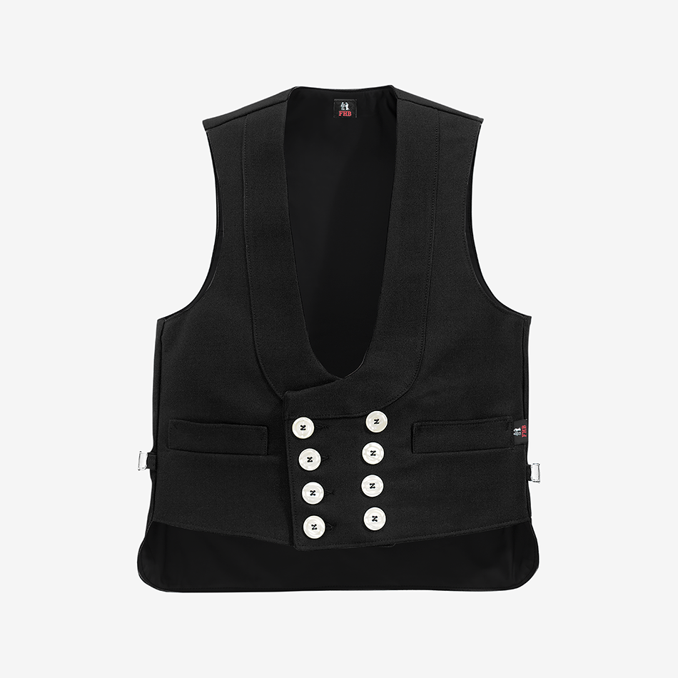 Designed with a loose, straight cut, the vest offers full freedom of movement thanks to its specially shaped neckline and armholes. Adjustable back buckle straps allow for a customized fit.