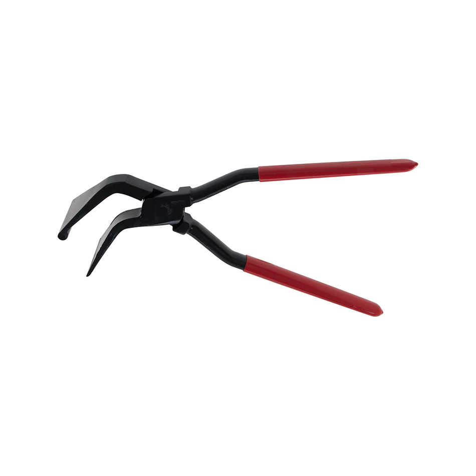 Stubai seaming pliers R8, KTL, PVC with welded radius 8mm on one jaw side. For smoother rounder bends, especially when working with Zinc, Aluminium and Copper materials. KTL coated, with lap joint, red plastic coated handles