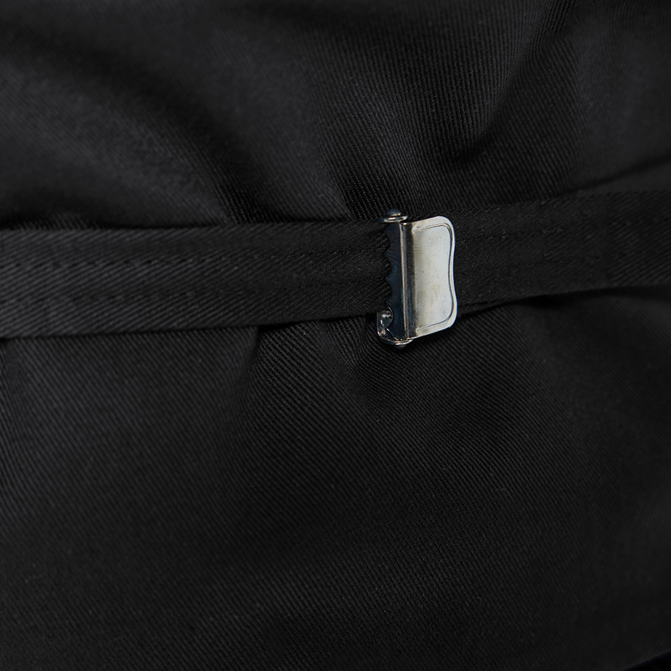 This trenker corduroy three wire vest features a loose, straight cut with a shorter back and specially shaped neckline and armholes for full freedom of movement while working. A back buckle strap allows for easy, individual width adjustment.