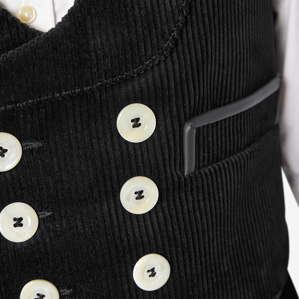 Made from FHB’s heaviest fabric quality, three-wire corduroy, this vest stands out with high-quality genuine leather pocket edging and real mother-of-pearl buttons. The traditional double-breasted, eight-button design, extremely robust seams, and reinforced Ascolite button-wrapping system ensure long-lasting performance, even under demanding conditions.