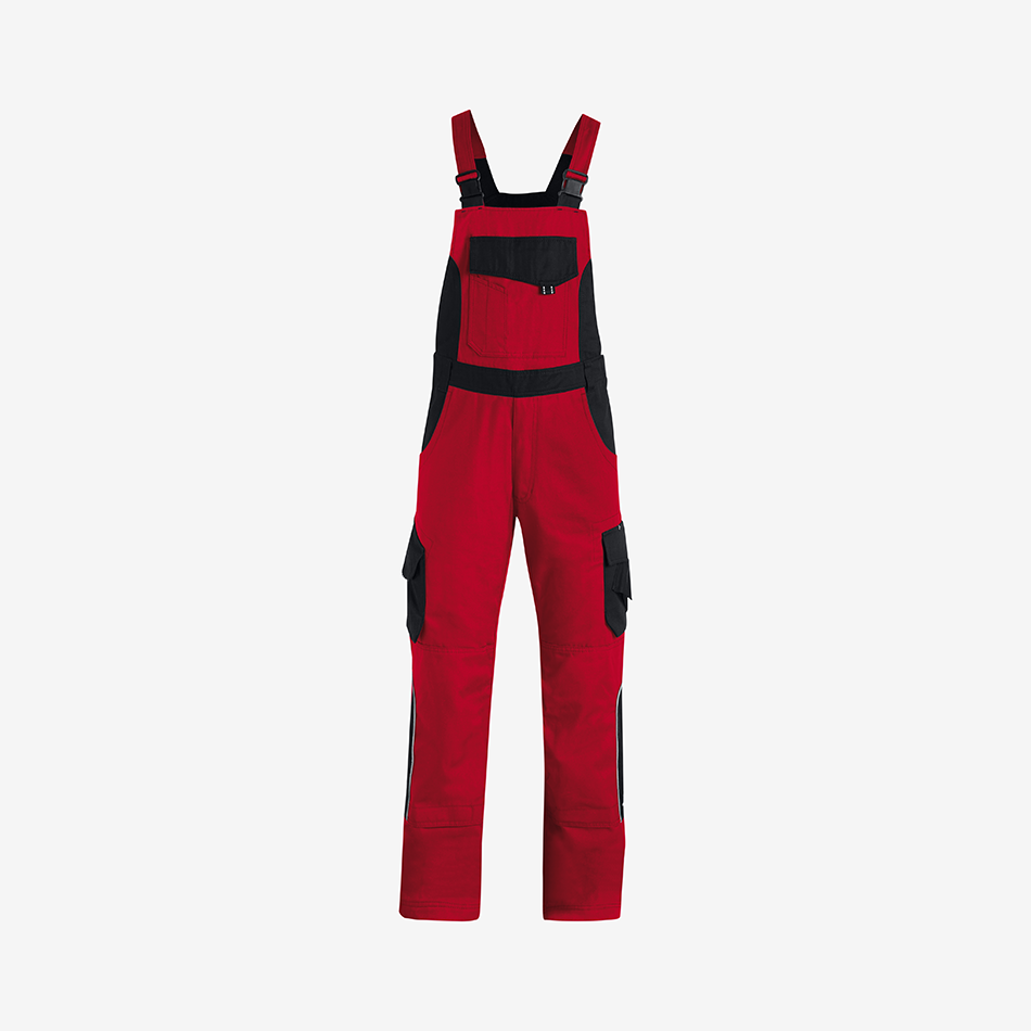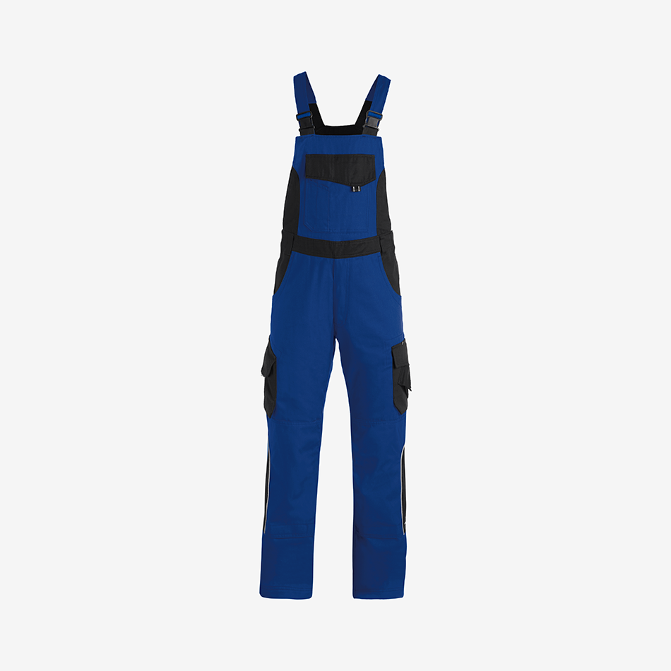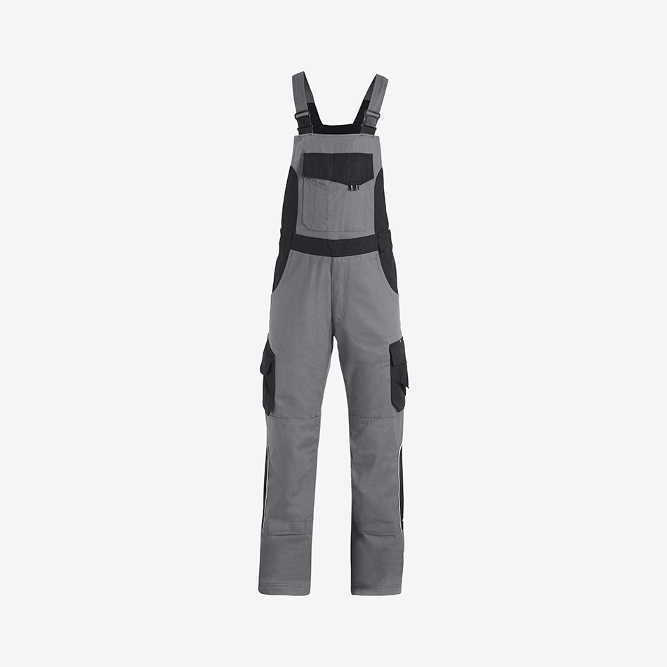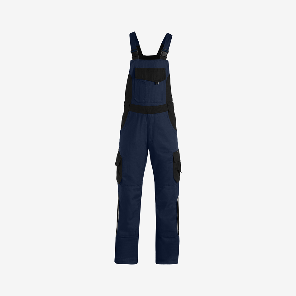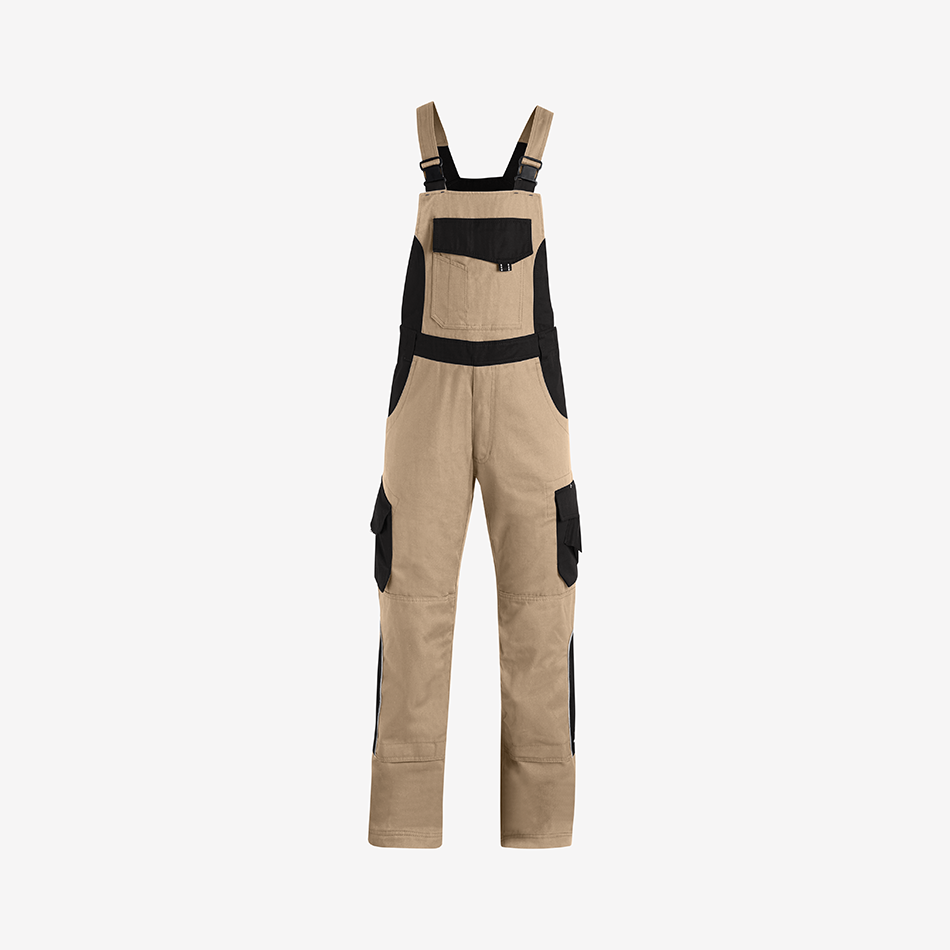 Elastic side inserts allow the dungarees to stretch comfortably when putting them on and during movement, making them especially comfortable for active work. Adjustable elastic braces ensure a secure fit, while durable YKK plastic buckles are flat, stable, and designed to stay quiet during movement. The straps maintain their shape even after frequent washing and can be neatly secured at the back for a clean finish.