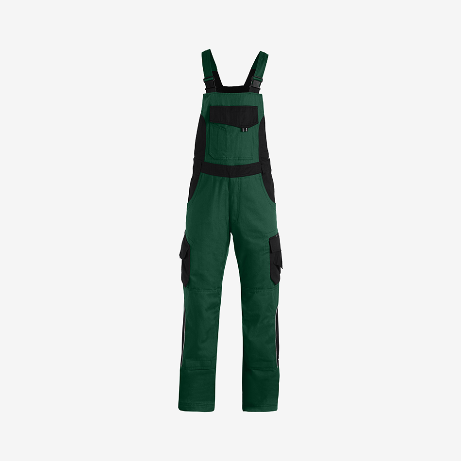 For added functionality, pre-shaped knee pad pockets allow FHB knee pads to be easily inserted from below. Reinforced triple-stitched crotch seams improve durability and extend the life of the trousers, while contrast reinforcement at the pocket corners adds extra strength where it’s needed most. Built for comfort and durability, Eckhard dungarees are a reliable choice for everyday work.
