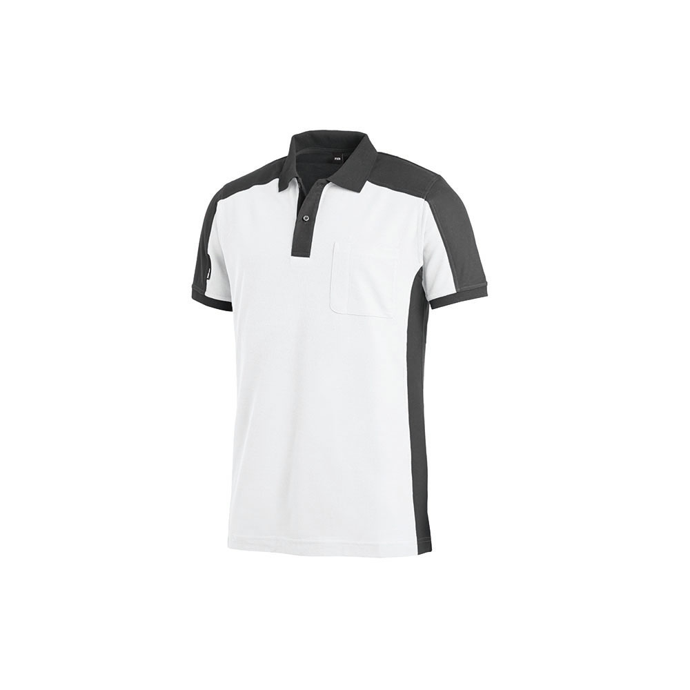 This two-coloured polo shirt has two tones, a two button placket, a breast pocket with a pencil compartment, double overlock seams, ribbed edging on the collar and sleeves, and side slits so you can move more easily.